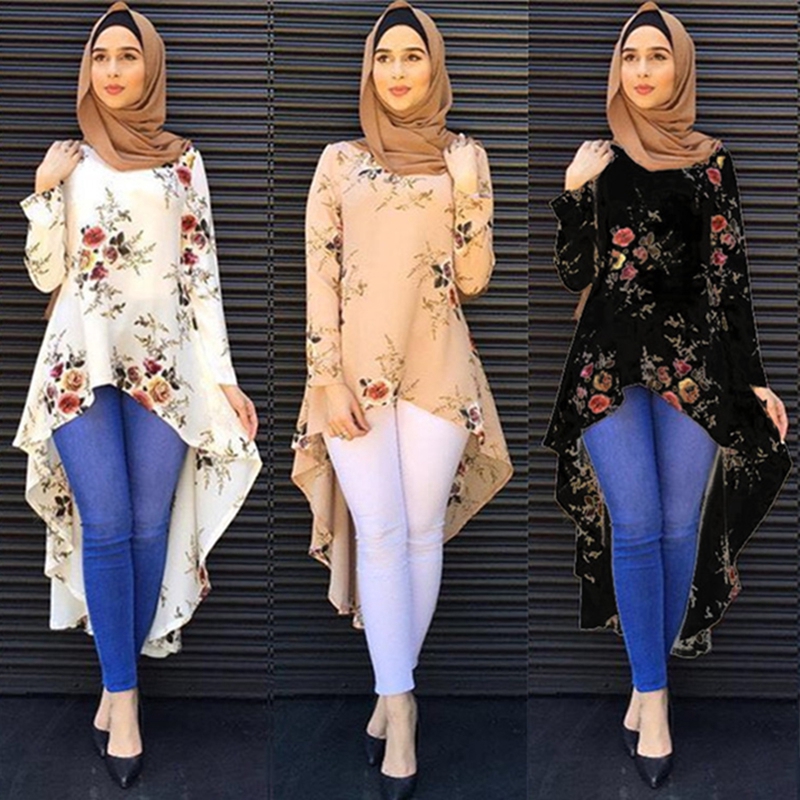 Dubai Women Casual Long Sleeve Shirt O Neck Irregular Hem T Shirt
