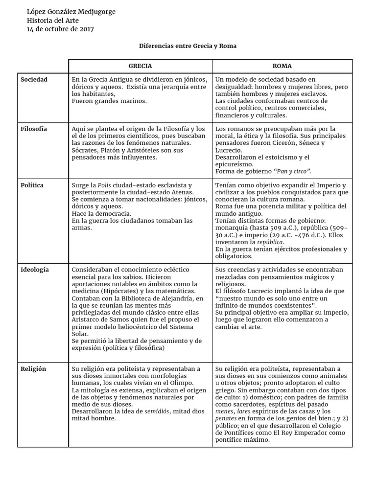 Tabla Comparativa Grecia Y Roma Docsity